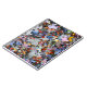 Fotografía de piezas del rompecabezas impresas en el borde de un cuaderno.