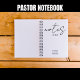 Un moderno guión de moda de Sermon Notes con nombre personalizado en tipografía de escritura negra. Cuaderno para pastores y clérigos de la iglesia.