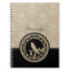 Recorra notas y recordatorios con este elegante diseño de cuaderno con fondo de damasco crema adornado con un emblema de ave amorosa de negro ébano. El texto de personalizable le permite alterar las fuentes, cambiar los colores y tamaños del texto según desee. Personalice para usted o haga un gran regalo.