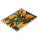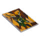 Un cuaderno de diseño con ciervo sobre un fondo naranja y marrón en un estilo moderno y abstracto.