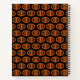 Este increíble cuaderno de espiral presenta un oval naranja con seis cuervos. Cada cuervo tiene ojos amarillos con pupilas negras y alas estiradas. Los cuervos están volando unos hacia otros formando una forma oval. El fondo es negro.