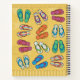 Flip flops de colores brillantes sobre un fondo con estampado dorado. El texto en la parte delantera dice: "Relájate... Desenrollar... Métete en un estado mental inverso". Organizarse con este divertido cuaderno de espiral. Dimensiones: 8,5" w x 11" h. Recuento de páginas: 60 hojas, 120 páginas. Papel suave y resistente de papel liso de texto duradero. 6 colores para la espiral. Elección de 8 diseños para las páginas. Compatible con CPSIA.