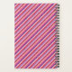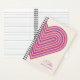 Un corazón arcoiris colorido es el foco principal de este cuaderno enlazado a espiral. Hay espacio para el personalizar del diseño en la esquina inferior derecha. En la parte posterior de la revista aparece un patrón de coordinación de rayas moradas, rosas, rojas y naranjas. Este diseño sería perfecto para un chica joven, ¡quizás como regalo de cumpleaños o El día de San Valentín!