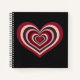 Un cuaderno de espiral negra con corazón rojo rayado de estilo retro