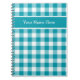 Un bloc de notas o un diario de personalizable en espiral, con un patrón de gingham de comprobación verde azulada y blanca.