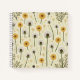 Este es un bloc de notas en espiral. Tiene un diseño de patrón de diente de león.