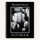 Este cuaderno personalizado tiene una fotografía de algunas flores de tulipán blancas y negras sobre un fondo negro. El nombre y el texto pueden ser fácilmente personalizados por usted, o simplemente eliminar si lo desea.
