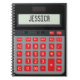 Este bloc de notas tiene un diseño único en la parte delantera con una calculadora gráfica con llaves rojas y letras blancas. El texto del nombre se puede cambiar para adaptarlo a sus propios requisitos.