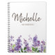 Hermosas flores de acuarela de lavanda morada en un cuaderno de espiral personalizado blanco, personalizado con un nombre de pila y apellido. Contáctenos para obtener ayuda sobre la personalización o la correspondencia de productos.
