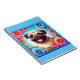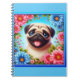 Este cuaderno de uso diario cuenta con un alegre Pug, rodeado de flores brillantes.