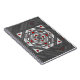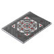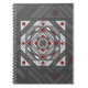 Una mandala cuadrada concéntrica toma la apariencia de un túnel que atrae al espectador con una combinación de líneas anguladas, triángulos y círculos en tonos grises, rojos y blancos para casi crear una ilusión óptica.