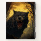Un hombre lobo serpentea cuando emerge de un rocoso. Detrás de él hay un cielo ámbar y un bosque de árboles sin hojas. Es el regalo perfecto para los amantes del werewolf y los fanáticos de Halloween.