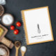 Libro de recetas moderno y minimalista con detalles en color amarillo mostaza y negro con un bigote de globo con corazón en el asa. ¡Añade tu nombre en negrita!