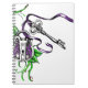 Dibujo original a lápiz de color de Sandra Gale con un candado y una llave vintage, La cerradura de estilo antiguo está rodeada de viñas, espinas y hojas verdes. La llave del esqueleto cuelga de una cinta morada.