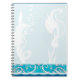 Dibujo original de Sandra Gale de dos caballos de mar en silueta sobre un fondo azul pálido y un agua azul y un borde giratorio. Gran diseño para cuartos de baño, habitaciones y habitaciones para niños.