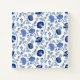 Diseño de patrones de superficie de dos vías de estilo jacobeo (grande en la parte delantera, más pequeño en la parte posterior) en tonos azules contrastantes sobre un fondo blanco.
