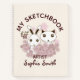 El diseño del producto presenta adorables conejito y gatito sosteniendo flores rosadas. Este bonito dibujo animado de animales hace un cuaderno de dibujo único y lindo con texto personalizado.