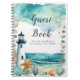 Hermoso libro boda Guest con faro náutico en blanco y negro, pez estrella y conchas. Ideal para un boda. Las palabras se pueden cambiar para adaptarlas a sus propios detalles o requisitos