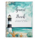 Hermoso libro boda Guest con faro náutico en blanco y negro, pez estrella y conchas. Ideal para un boda. Las palabras se pueden cambiar para adaptarlas a sus propios detalles o requisitos