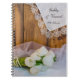 El encantador bloc de notas rústico de la espiral de bodas rurales de los tulipanes blancos se puede personalizar con los nombres de la novia y el novio y su fecha informal de ceremonia de matrimonio en la granja crean un libro de invitados o un libro de consejos para los recién casados. Este libro de notas nupciales estilo rancho, informal pero elegante, presenta una pintoresca fotografía floral de un ramo de flores de tulipano blanco, collar de perlas blancas, velo de novia blanco y un pañuelo vintage de lino cortado con fondo de madera marrón.