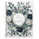 Cuaderno Boda floral moderna azul oscuro y blanco