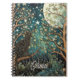 A whimsical boho black cat lounges beneath a luminous, star-strewn moonlit sky, quietly attuned to the soft whispers of the forest.