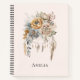 Portátil espiral con un ramo de flores en colores neutros de marrón, melocotón y naranja. Un soñador con plumas añade un elegante toque místico.