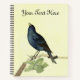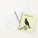 Este cuaderno en espiral es amarillo pálido con un bonito cantando un pájaro negro sentado en una rama de árbol con hojas al lado de una oruga. Personalizar tu texto en la parte superior con la plantilla en la parte delantera.