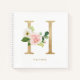 Portátil monograma floral H de letra femenina y bonito. Cuenta con flores blancas y rosas y acentos verdes con una tipografía de Relieve metalizado de oro falso. Personalice agregando un nombre o una frase corta. Este cuaderno monograma de letras florales será perfecto como regalo.