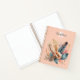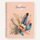 Un cuaderno elegante con un motivo natural de plumas, hojas y una flor de color albaricoque sobre un fondo color rosa chispeante. El portátil de bonito puede personalizarse con su nombre inicial y su nombre como un monograma elegante.