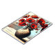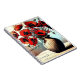 Envases de flores. Camionetas rojas en un jarrón blanco sentado sobre una mesa. personalizados de historietas de bonito.