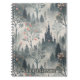 Este fantástico cuaderno de espiral escénica presenta un castillo oscuro y altísimo con ventanas brillantes enclavado en un bosque de colores azules y grises. Rodeado de verduras delgadas, árboles de ramas desnudas y flores suaves en rosa y naranja, el paisaje brilla con sutiles toques de luz mágica. El ambiente cretense y los detalles etéreos crean una atmósfera misteriosa y caprichosa, perfecta para los amantes de la fantasía, los cuentos de hadas y los ambientes del bosque de ensueño.