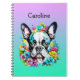 Cuaderno Boston Terrier rodeado de flores personalizadas