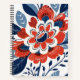 Un cuaderno bonito y atrevido lleno de flores rojas, azules, blancas y tallos botánicos. ¡Traerá una sonrisa instantánea a tu cara!