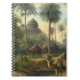 Pintura de época de una escena botánica con cuatro dromedarios frente a un palacio indio cerca de un río