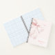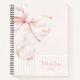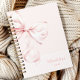 Cuidada y encantadora notebook rosa con un suave diseño de fondo de rayas rosas y un delicado ilustracion de arco.