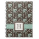 Este bonito y cubierta elegante del cuaderno espiral del damasco del trullo y oscuro del marrón con un fondo ligeramente texturizado pueden ser personalizados con su monograma o inicial en el diseño de la cinta de la puntada del contraste. Este espiral de encargo hermoso y sofisticado - el cuaderno encuadernado se puede también utilizar como diario, diario, materiales de oficina caseros o de nuevo al regalo de la escuela. Diseñado por Chrissy H. Studios, LLC.