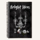 ¡Hecho con la persona gótica creativa en mente! ¡Que las velas te inspiren a escribir tus "Ideas Brillantes" con un Estilo Gótico! Un bonito cuaderno de fondo de estilo victoriano gris/negro decorado con Candelabra espumoso, calavera, araña, Rosas y vidrio horario. ¡Nunca hay tiempo suficiente, así que escríbalo! Apelar a la persona única e inusual. Hecha con fantasía por Femme Fatale Creations.