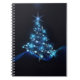 Cuaderno Brillo azul de estrellas en árbol de Navidad oscur