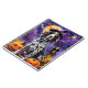 Admire el espíritu de Halloween con este diseño encantador que presenta un perro lindo en un gorra de brujas rodeado de calabazas talladas. Perfecto para añadir un toque de encanto espeluznante a sus celebraciones festivas.
