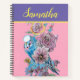 Cuaderno de patrón de pintura de acuarela de flor de Budgie azul, con un nombre totalmente personalizable. Diseñado a partir de mi ilustración original de gato.