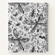 Variedad dibujada a mano de insectos y flores en blanco y negro
