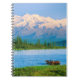 Wonder Lake, Bull moose feeds on vegetation, Alaska mountains in the distance, Denali National Park, Alaska