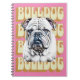 Bulldog inglés blanco lindo con un tipo de letra retro tostado con vibraciones vintage.