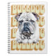 Bulldog inglés blanco lindo con un tipo de letra retro tostado con vibraciones vintage.