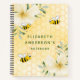 Yellow, white background with a honeycomb pattern. Decorated with light pink, cream colored tropical florals flowers, hibiscus and happy bumble bees. Templates for your name, title and text. A college ruled notebook, perfect for keeping your notes working from home.