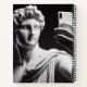 Un busto de mármol blanco de un anciano griego que se toma selfie con su teléfono móvil