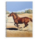 Un cuaderno en espiral que representa a un caballo galopando disfrutando de su tiempo libre en la arena.