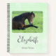 Un cuaderno de espiral personalizado con una hermosa fotografía con un hermoso caballo marrón tendido en el césped, con aspecto tranquilo y contento.