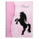 Cuaderno de Bonito y de silueta de caballo con colores rosa y negro.
